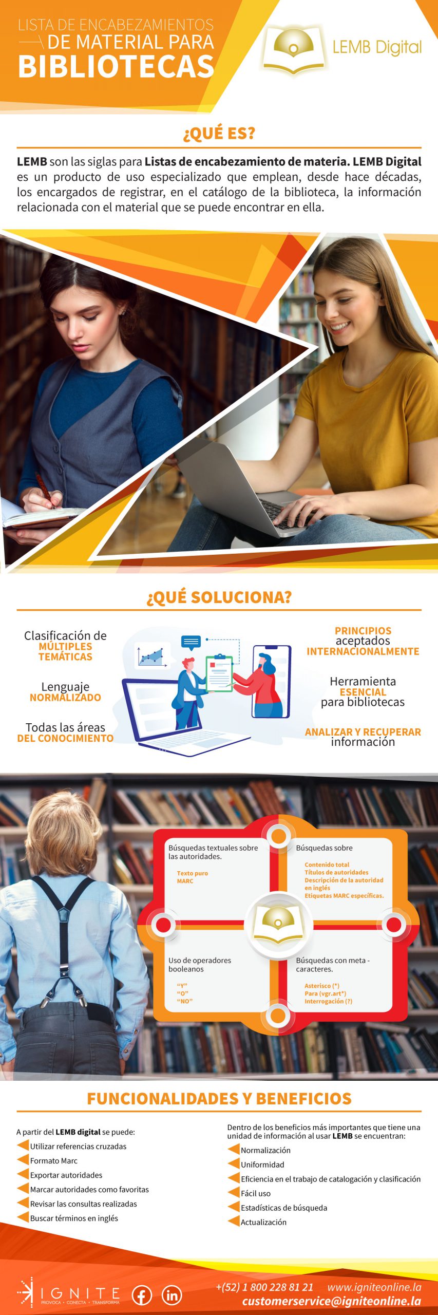 LEMB son las siglas para Listas de Encabezamiento de Materia, se trata de un producto de uso especializado que a través de una lista de términos que emplean, desde hace décadas, los encargados de registrar en el catálogo de la biblioteca la información relacionada con el materia que se puede encontrar en ella.